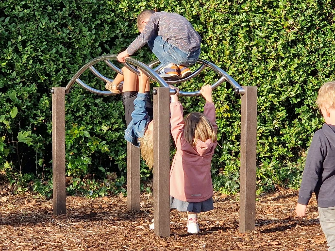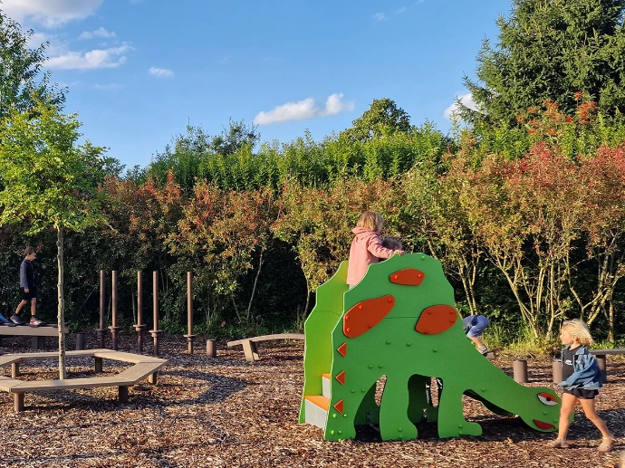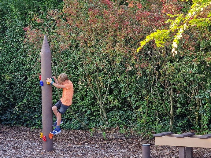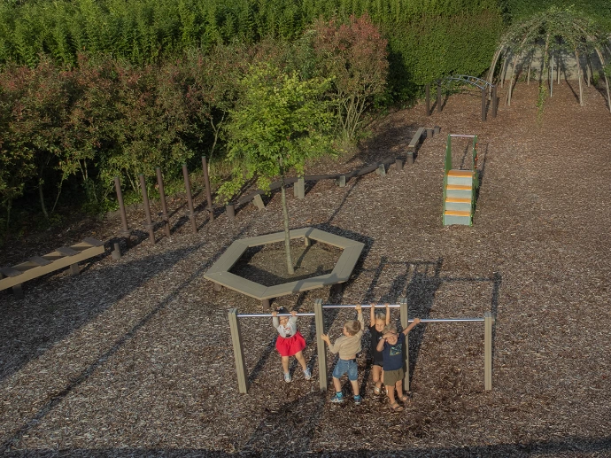 We zien onder andere een parcours GP101, een hangladder, een zeshoekbank, een duikelrek en enkele experimentele speeltuigen op maat.
