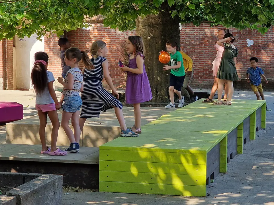 Nous avons conçu l'aménagement de la nouvelle aire de jeux verte en tenant compte de la forêt de 100m² sponsorisée par Eneco avec notre partenaire Forest Forward.