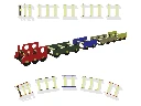 2 delen: rode locomotief + 1 wagons (groen) - 188 kg 3 delen: rode locomotief + 2 wagons (groen, geel) - 243 kg 4 delen: rode locomotief + 3 wagons (groen, blauw, geel) - 298 kg 5 delen: rode...